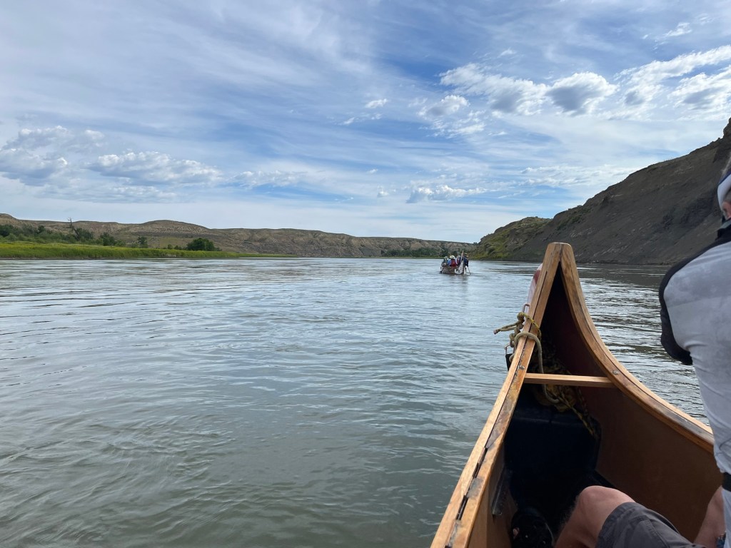 This is a meandering section of the river and reminded me of so many prairie paddle trips we’ve done as a group – Red River, Assiniboine River etc. The difference with the Missouri River is that the banks in this section are so much higher and much more dramatic. In several places we simply let the boat drift to take in the scenery of low rolling hills on one side and steep carved and eroded cliffs on the other.