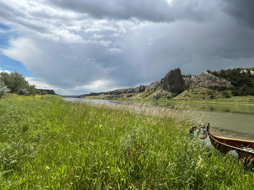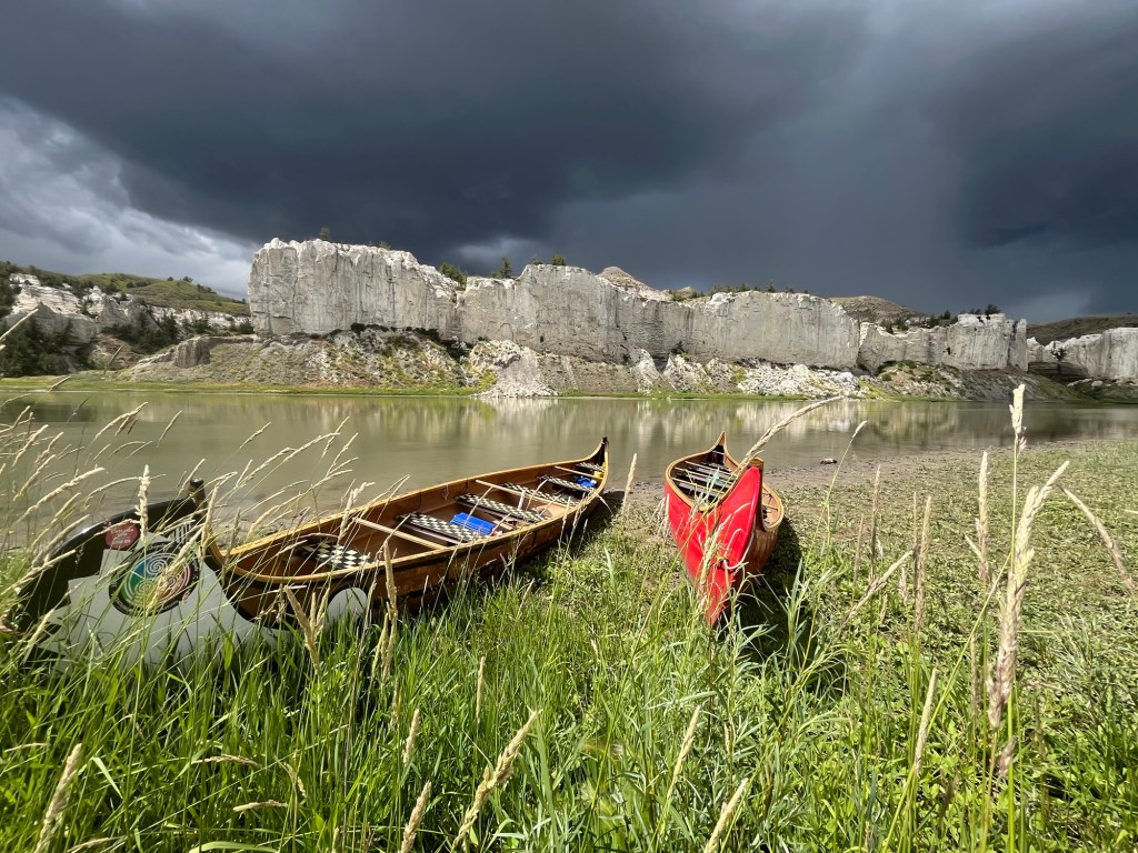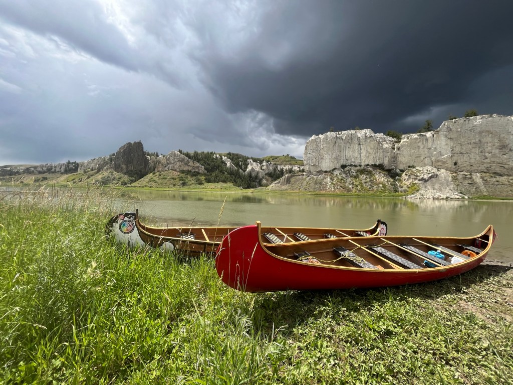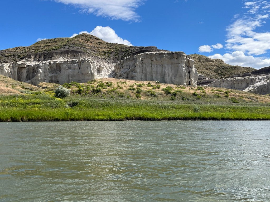 For the next 3 days and 2 nights, we’d be in the more remote wilderness sections of the Missouri River. To that end, our packing included all the camping gear you’d suspect we would take – tents, sleeping bags, cooking stove and utensils, safety supplies, satellite phone. One of the more important things we pack for this reach of the river is water. The river water is not potable – you can’t even filter it and drink it (largely due to chemical agricultural pollution I gather). So we load a gallon of water each per day plus some extra…just in case.
