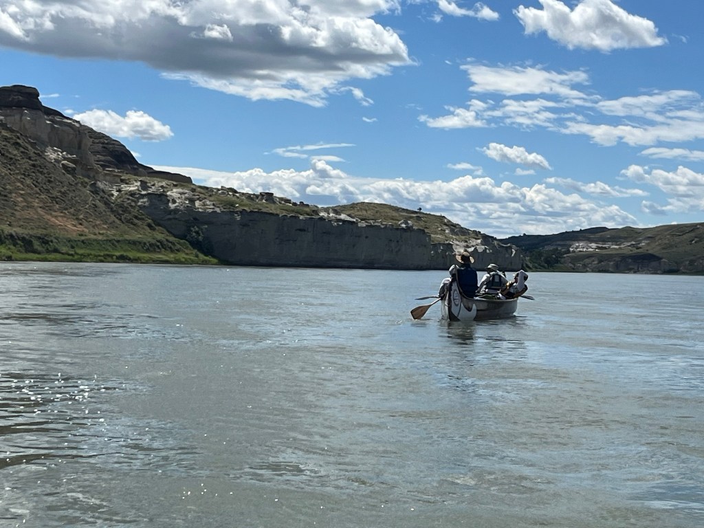 As we paddle out from Coal Banks, the water is moving faster than I think most of us anticipated and in many places we’re getting up to 12-15km/hr in spots where the river narrows a little. There are no ‘rapids’ on the river, but this faster water is far more exciting than having a simple ‘float-in-a-boat’.
