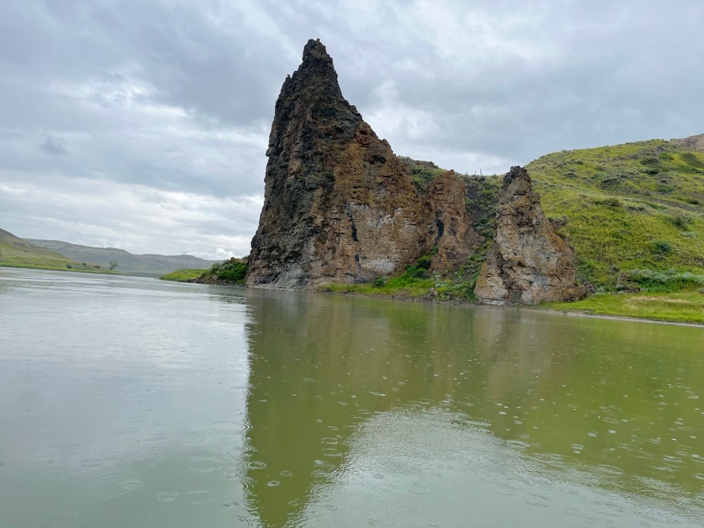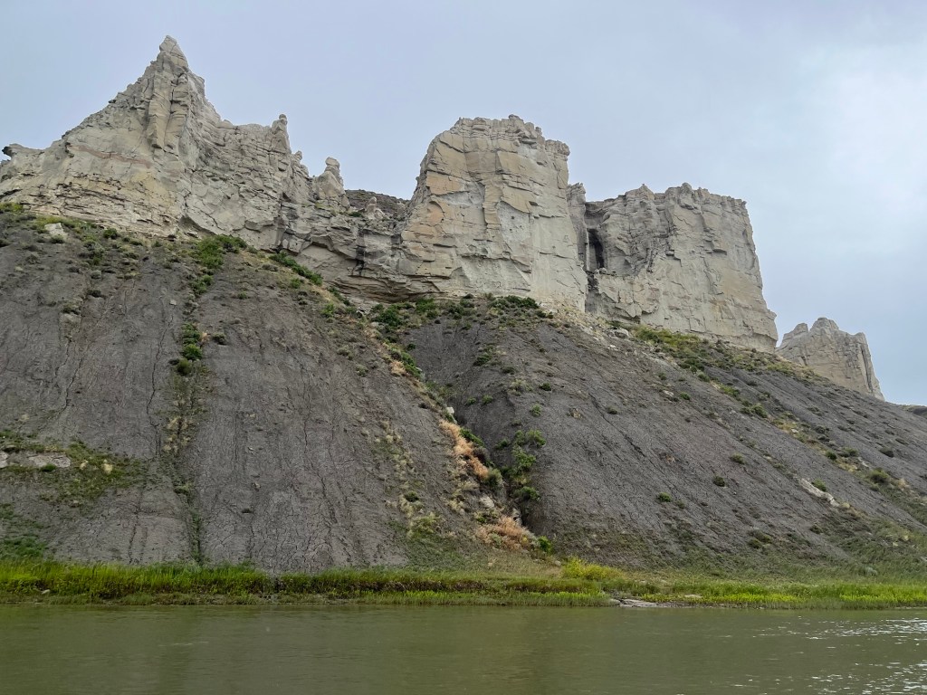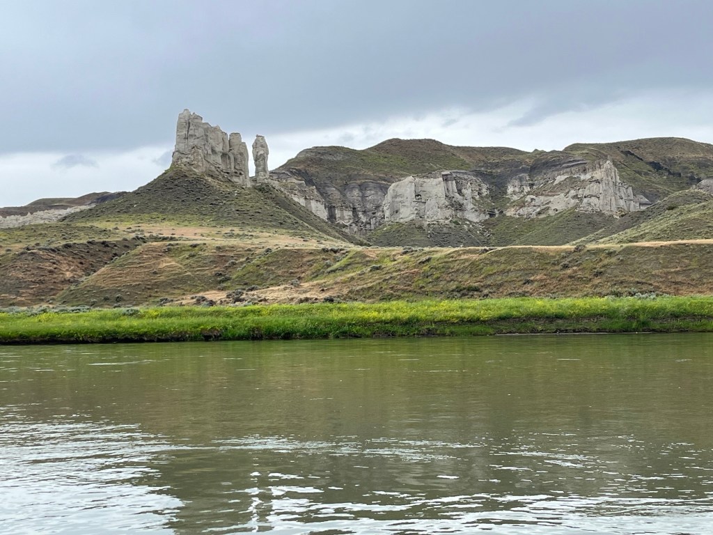 We witnessed this awe inspiring beauty too – Monumental Rock, Citadel Rock, the Seven Sisters, Hole-in-the-Wall. And between these markers, the riverbanks alternated between jutting escarpments and rolling Montana hills that remained so green and overly lush to the point, in places, the green was almost fluorescent.