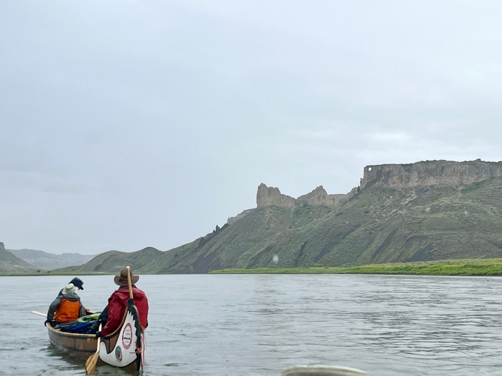 Today’s work will take us roughly 35km downstream to another developed BLM campsite at Slaughter River. The bonus here (in addition the the pit toilets, of course) is that the site has a covered shelter if we happen to face inclement weather, unbearable heat, or some of the gale-like winds we’ve faced.