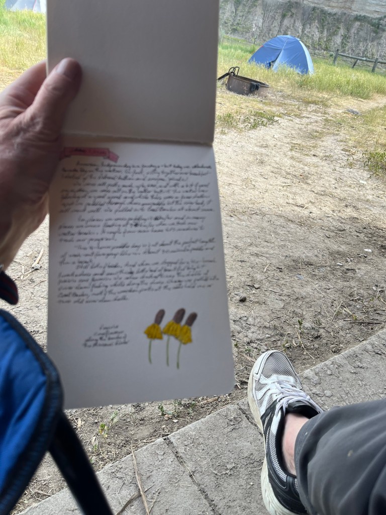 This afternoon I gave myself a bit of treat – I took a bath in the Missouri River. The river water certainly isn’t potable – but it is suitable for bathing. It was a bit chilly, yes, but I can attest that it was no where near as cold as the bath in took in the Mackenzie River on our Arctic voyage in 2014! The bath set me up for sumptuously clean cloths and was a great way to end the day as I crawled into my sleeping bag.