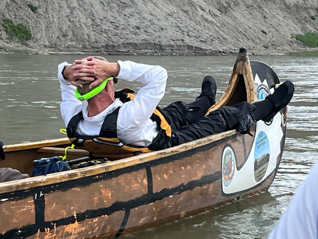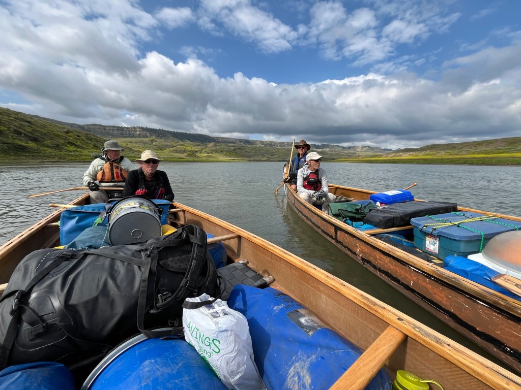 Val was there to meet us too at Judith Landing, and he’d scouted out a great campsite just a few meters off the water’s edge…parking pad for his big van, fire pit, picnic table, lots of camping space for 7 tents, and not too far from the pit toilet. This felt a little like luxury.
