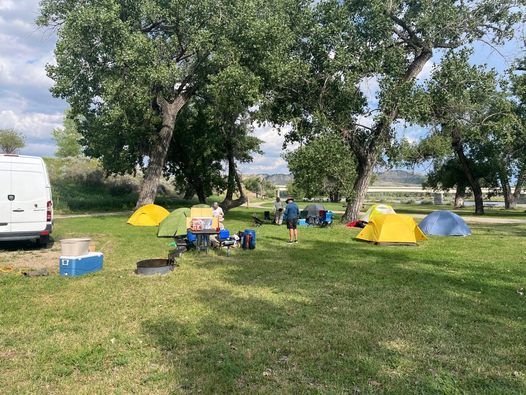 Next to our campsite, we saw a few folks arrive in pickup trucks. Slowly, more vehicles arrived and soon there had to be 5-6 vehicles and more than 20 people gathered for a bbq, drinks, and visiting. One of our crew spoke with them and it seems their family has been in this part of Montana since the 1800s! As it turns out, every year they gather at Judith Landing to set off fireworks for the 4th of July.