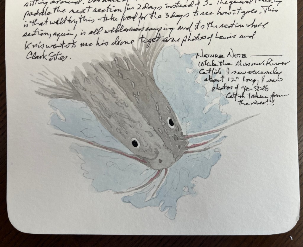 This reach of the Missouri River already begins to show a landscape that is less dramatic and picturesque than the last couple of days. The hills are a little more rolling, fewer steep cliff faces rising from the water’s edge, and the valley seems to be widening out a little too. What remains a dominant image is the greenness of the territory with all the rain through the Spring!