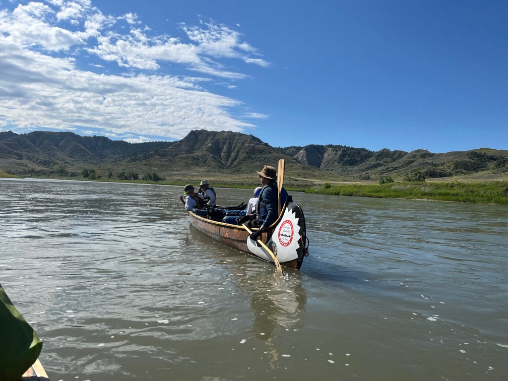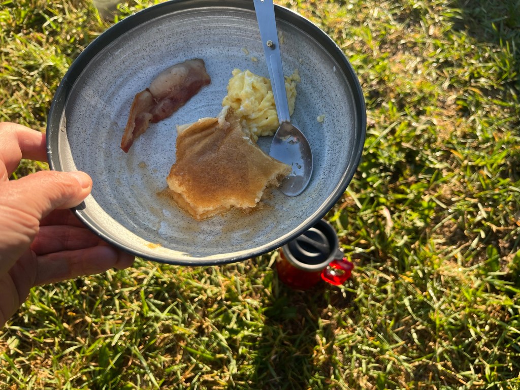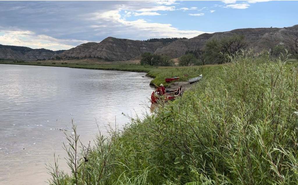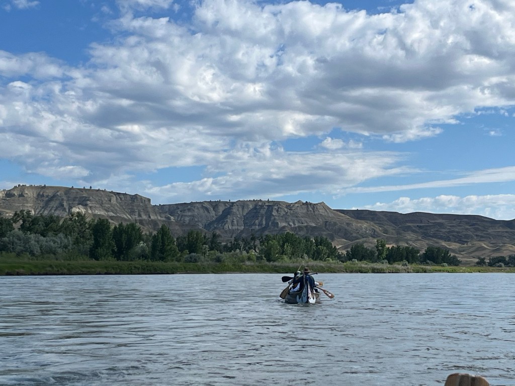 This morning was a big breakfast before our second section in the Montana wilderness of the Missouri River Breaks. We all ate pancakes, eggs, bacon ,and sausage and drank coffee. Normally, I have to say that a big and heavy breakfast like this is unusual, but it felt like today was a bit of a celebration as it would be the last leg of our journey along this section of the Lewis and Clark Trail.