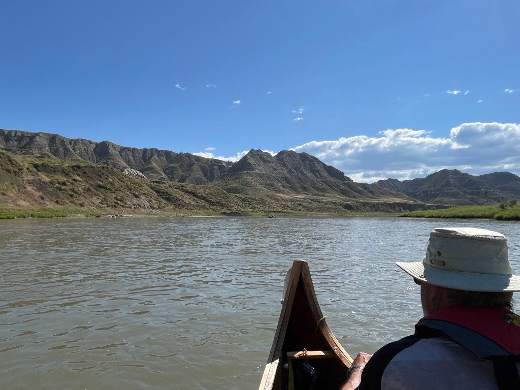 The songs of Meadowlarks were everywhere today it seemed. And at the beginning of the paddle it was hot – the kind of hot where you can actually smell the heat. That didn’t last long and, a couple of hours in, the storm we seem to have been chasing was upon us. It never really dumped a lot of water on us, just enough to soak our rain gear through!